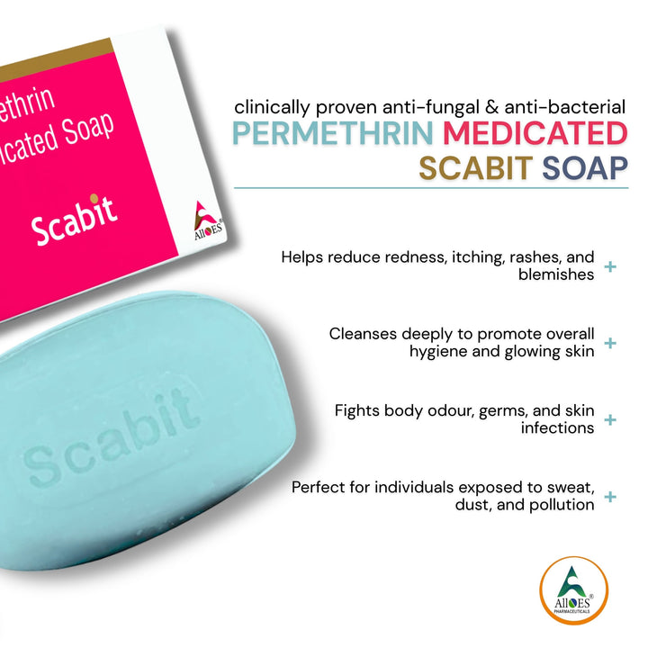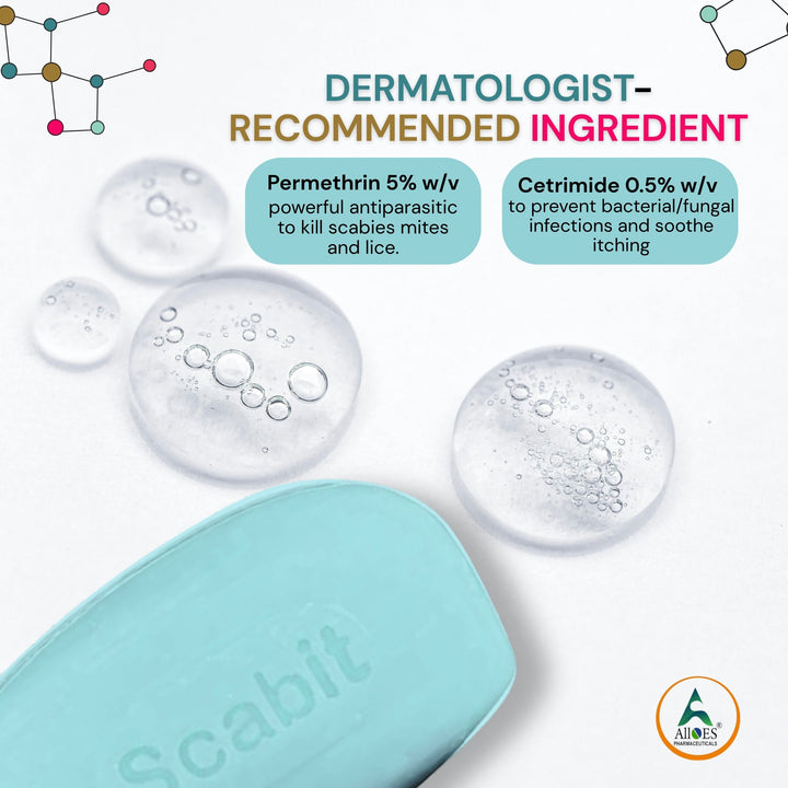 An antiparasitic drug is scabiate soap. It is used to treat scabies, a skin irritation and infestation caused by microscopic insects. By destroying the insects and their eggs, this medication kills them. It contains permethrin is an ingredient of permed soap, a medicated soap that aids in killing minuscule insects and the scabies-causing eggs they lay. It also used to lessen itching and kill head lice. Permethrin 1% Cetrimide 0.5% Menthol 1%